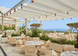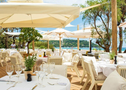 Offering a panoramic view over the port of Saint-Tropez, the restaurant of the Ermitage hotel