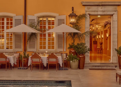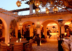 The local cuisine is served in a charming garden under the shade of the trees floating on the Mediterranean.