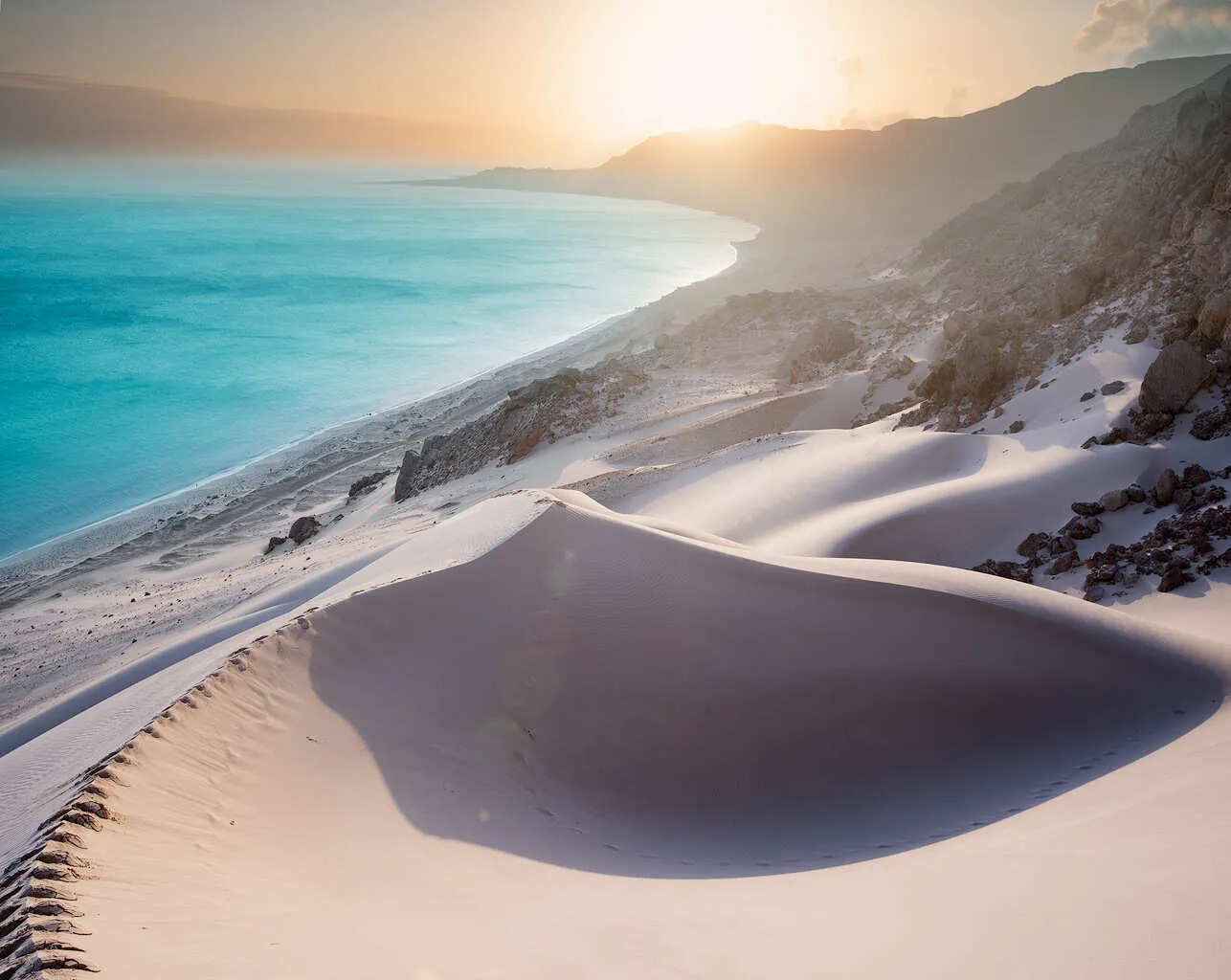 Прогулка по заповеднику Фирмхин, где растут эти деревья, обещает Вам увлекательный опыт наблюдения за природой. Каньон Вади Дирхур может предоставить возможности для купания в природных бассейнах. На закате переезд на южный берег к дюнам в Стеро, одному из самых удивительных мест на Сокотре. Белоснежный песок, из которого ветер наметает высокие дюны, подходит прямо к океану. Ужин в отеле. Ночевка в отеле. |